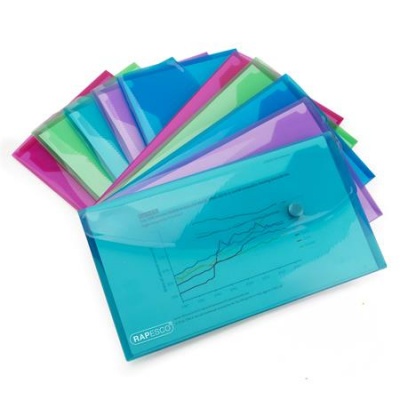 KezdőlapIrodaszerekIratrendezés, archiválásIratvédő tasakok és borítékokIrattartó tasak, DL, patentos, RAPESCO "Eco GRS Recycled", áttetsző vegyes színek