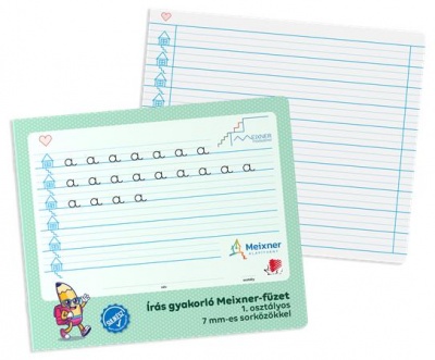 Írás gyakorló füzet az 1. osztályosok számára, amely a Meixner Alapítvány együttműködésével és ajánlásával jött létre. Speciális vonalazású és kialakítású füzet alkalmas a Meixner-féle írás tanulás elsajátítására és gyakorlására.